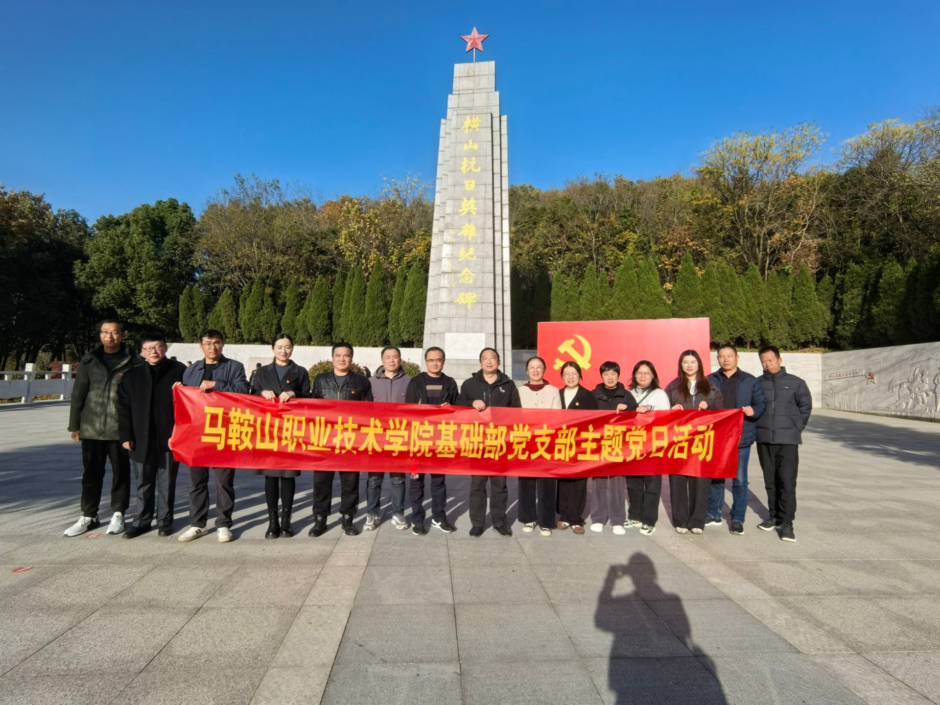 为常态化开展党史学习教育,激励广大党员教师传承革命精神、坚定理想信念,11月28日下午,基础教学部党支部组织全体党员教师前往横山烈士陵园、百峰村红色教育基地,开展“传承红色基因,赓续抗战精神”主题党日活动。